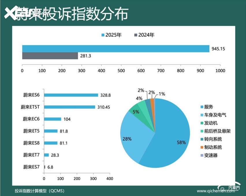 汽车质量投诉点评:蔚来2025年的投诉指数同比上升超两倍,其投诉指数为945.15。短期变相降价、不退订金和驾驶辅助系统故障是蔚来遭到集中投诉的主要原因。其中,短期变相降价问题在去年7月被大量蔚来车主投诉。据蔚来车主反馈,去年4月到5月,蔚来汽车销售人员以“清仓绝版优惠”“新款必涨价”等话术,催促消费者下单蔚来ES6、蔚来EC6等车型。但蔚来汽车却在去年7月宣布降价,导致蔚来汽车部分车型二手车估价缩水数万元。目前,蔚来汽车仍未作出正面回复。
