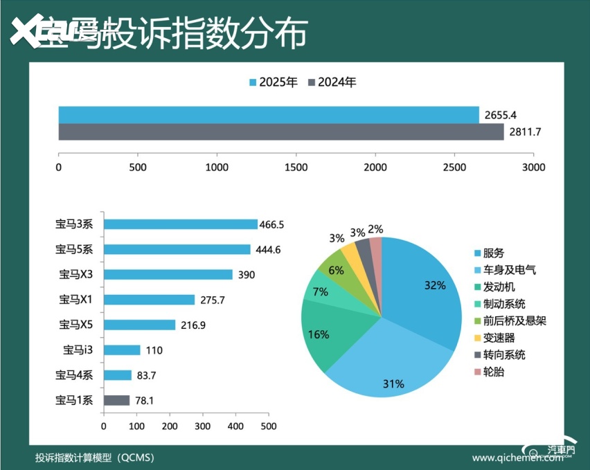 汽车质量投诉点评:2025年,宝马的投诉指数为2655.4,同比下降5.56%。大量宝马车主投诉称,宝马实车配置与官宣不符。宝马X3、宝马5系是该问题频发的主要车型。部分宝马车主反馈,2020款宝马5系、2020款至2021款宝马X3等车型搭载的车机系统缺少车主手册中描述的远程升级和语音控制等功能,并且4S店在销售过程中刻意隐瞒了这一情况。一位宝马车主称,目前已有多家媒体介入此事,但宝马至今依然没有给出明确的解决方案。