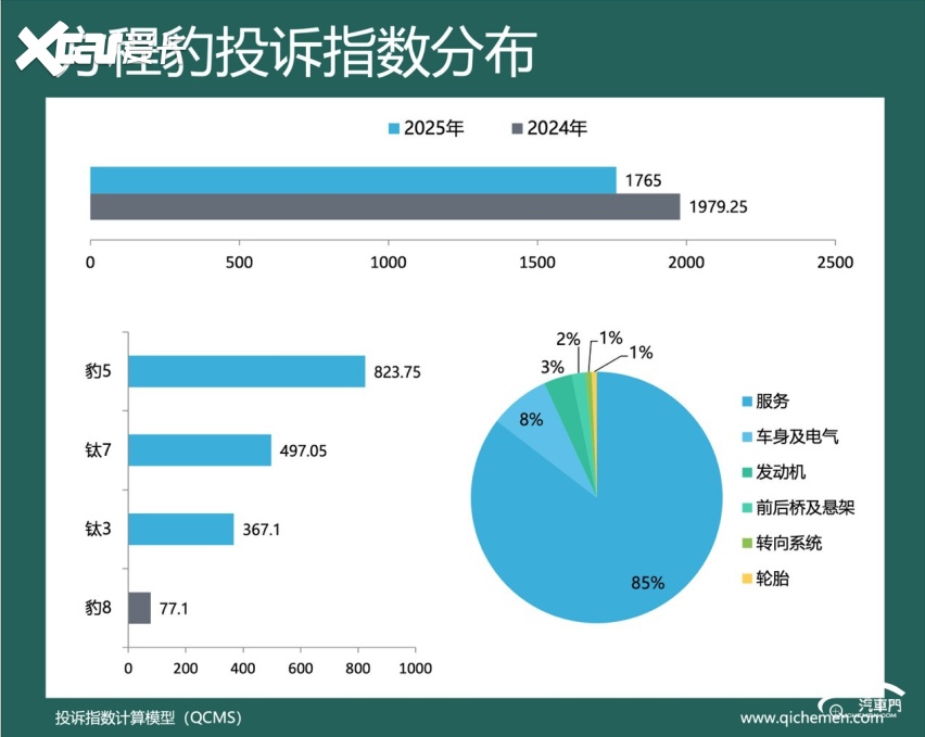 汽车质量投诉点评:2025年,方程豹的投诉指数为1765,同比下降10.82%。充电桩减配、新车降价增配、召回方案不合理是方程豹被投诉的主要问题。其中,充电桩减配是方程豹投诉频率最高的问题。去年10月,方程豹品牌在未告知车主的前提下,对车辆充电桩进行“升级”。新款充电桩不仅外观质感下降,核心功能也被取消。许多方程豹车主反馈,充电桩问题已多次投诉,但方程豹官方至今未给予明确答复。